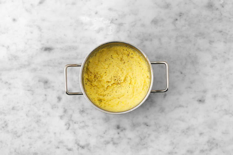 cremigem Käse-Kartoffelstock und gedämpften Broccoli