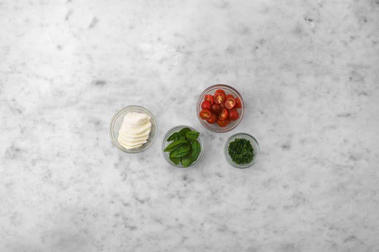Mozzarella und Tomate, dazu Kartoffelspalten