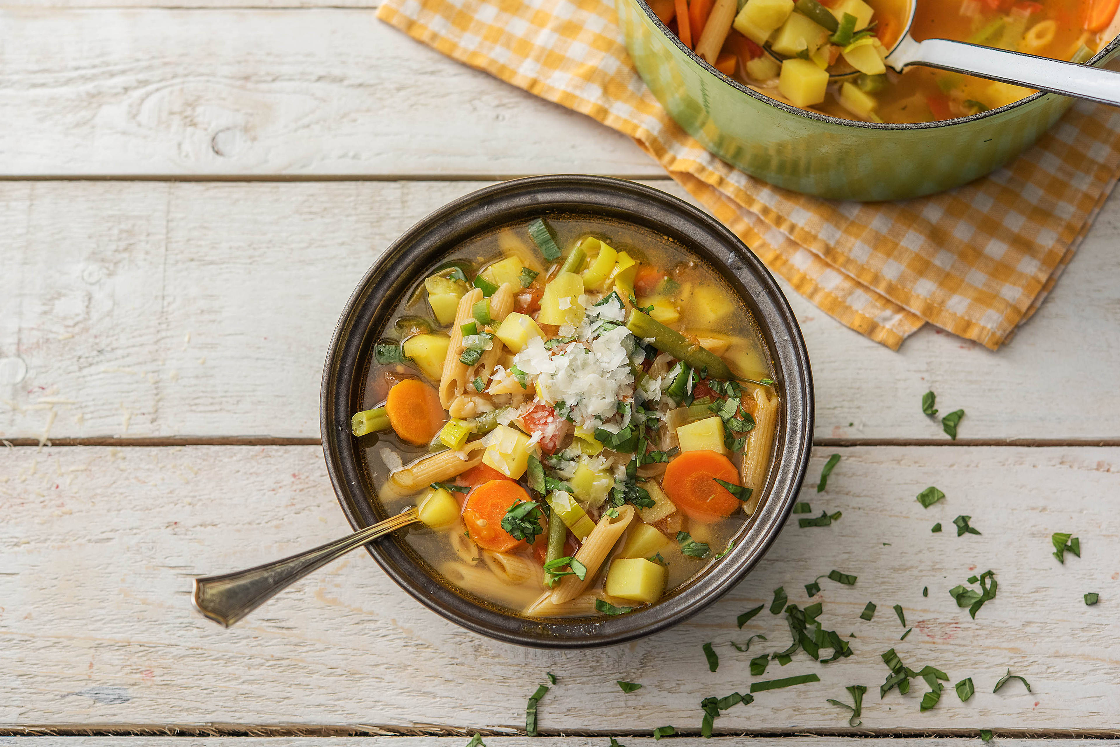Eine Bratpfanne auf mittelhoher Stufe erhitzen. Pouletstreifen, Lauch und stückige Tomaten hineingeben und mit 4 g [8 g] Pouletbouillonpulver* und „Hello Buon Appetito“ würzen. Zugedeckt 10 – 12 Min. köcheln lassen.
