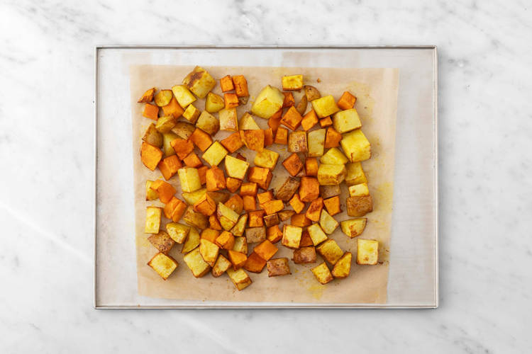 Das Curry mit 300 ml [450 ml | 600 ml] Wasser* ablöschen. Ofengemüse dazugeben, Deckel aufsetzen und 5 – 6 Min. abgedeckt köcheln lassen, bis die Soße eindickt. Mit Limettensaft, Salz* und Pfeffer* abschmecken.