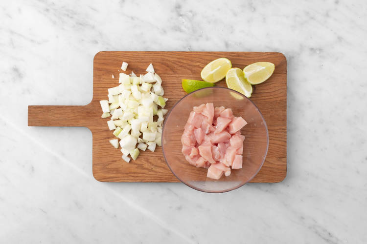 Kürbis-Hähnchen-Curry auf tiefen Tellern verteilen. Limettenjoghurt über das Curry träufeln. Mit restliche Limettenspalte servieren.