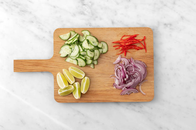 roter Spitzpeperoni, Zucchetti und frischem Basilikum