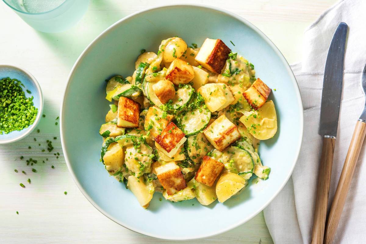Eintopf auf tiefen Tellern verteilen. Mit Halloumiwürfeln und Schnittlauchröllchen toppen und geniessen.