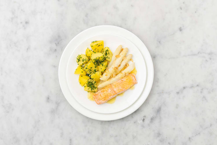 Heute wird es besonders proteinreich mit einem zarten Fischfilet. In Kombination mit knackigem Spargel geniesst Du ausgewogen und lecker.