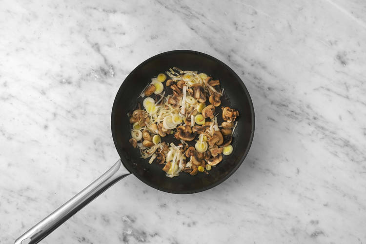 Champignons und Lauch, geschnitten