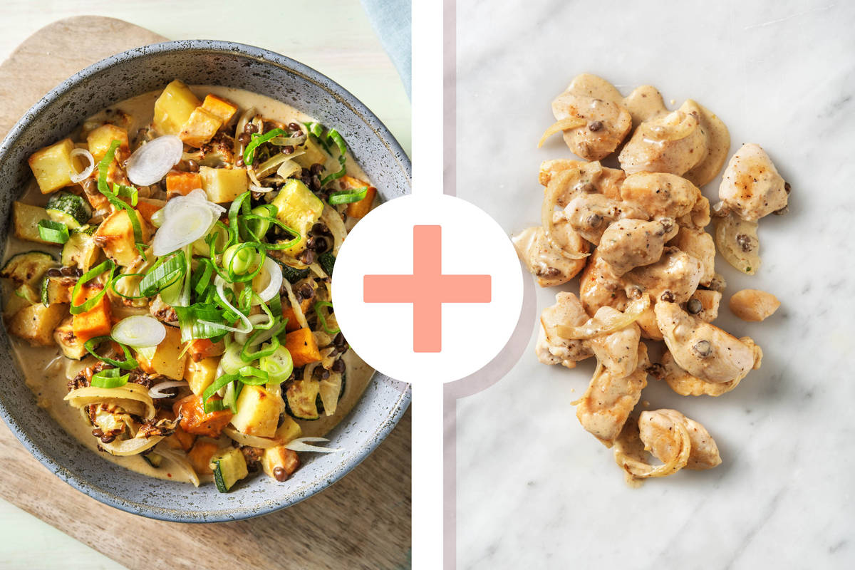 Extra Leckerbissen! Dein Massaman-Curry erfährt heute ein Upgrade durch zartes Hähnchenbrustfilet. So verwöhnst Du Dich ganz besonders nach einem langen Arbeitstag. Dazu bieten wir Dir eine kunterbunte Mischung an verschiedenen Proteinen, Ballaststoffen und Kohlenhydraten aus Linsen, Kartoffel, Süßkartoffel und Blumenkohl. Die sorgen dafür, dass Du garantiert lange satt bleibst. Lass es Dir schmecken!