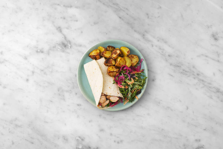 dazu Honig-Senf-Gemüse und Dill-Kartoffelpüree