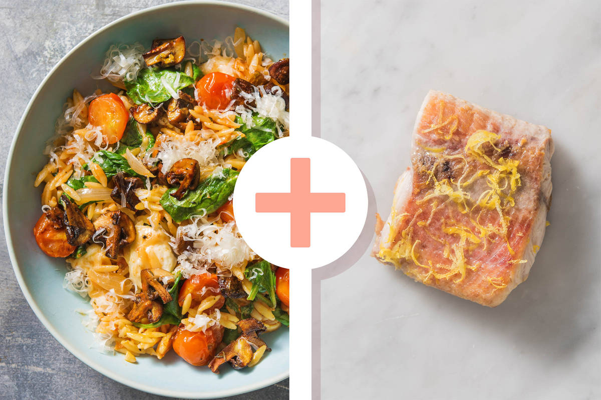 Sag Hello zu unserem „Orzotto“! So könnte unser Rezept nämlich heißen, da es wie ein Risotto gekocht wird, jedoch nicht mit Reis, sondern Orzo-Nudeln. Die Zubereitung ist denkbar einfach: Während die marinierten Kirschtomaten und Pilze im Ofen schmoren, bereitest Du den Rest in nur einem Topf zu. Rühren, rühren, rühren lautet die Devise. Der würzig-rauchige Geschmack wird die schönste Belohnung sein, die es nach einem langen Tag geben kann!