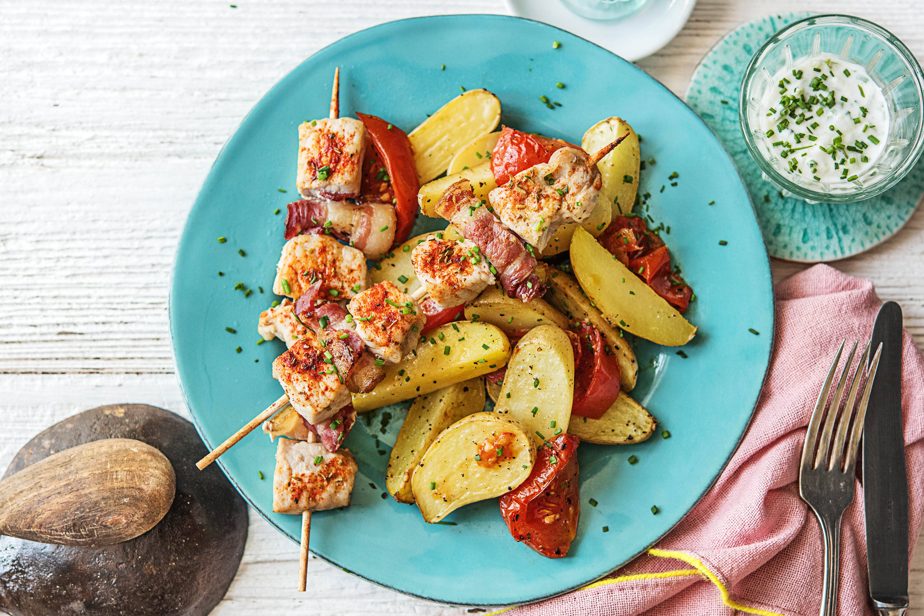 Bacon in dünne Streifen schneiden. In einem hohen Rührgefäß Sahne, 50 ml [75 ml |100 ml] Wasser*, Hühnerbrühpulver und Maisstärke gut vermischen, sodass keine Klümpchen mehr vorhanden sind.