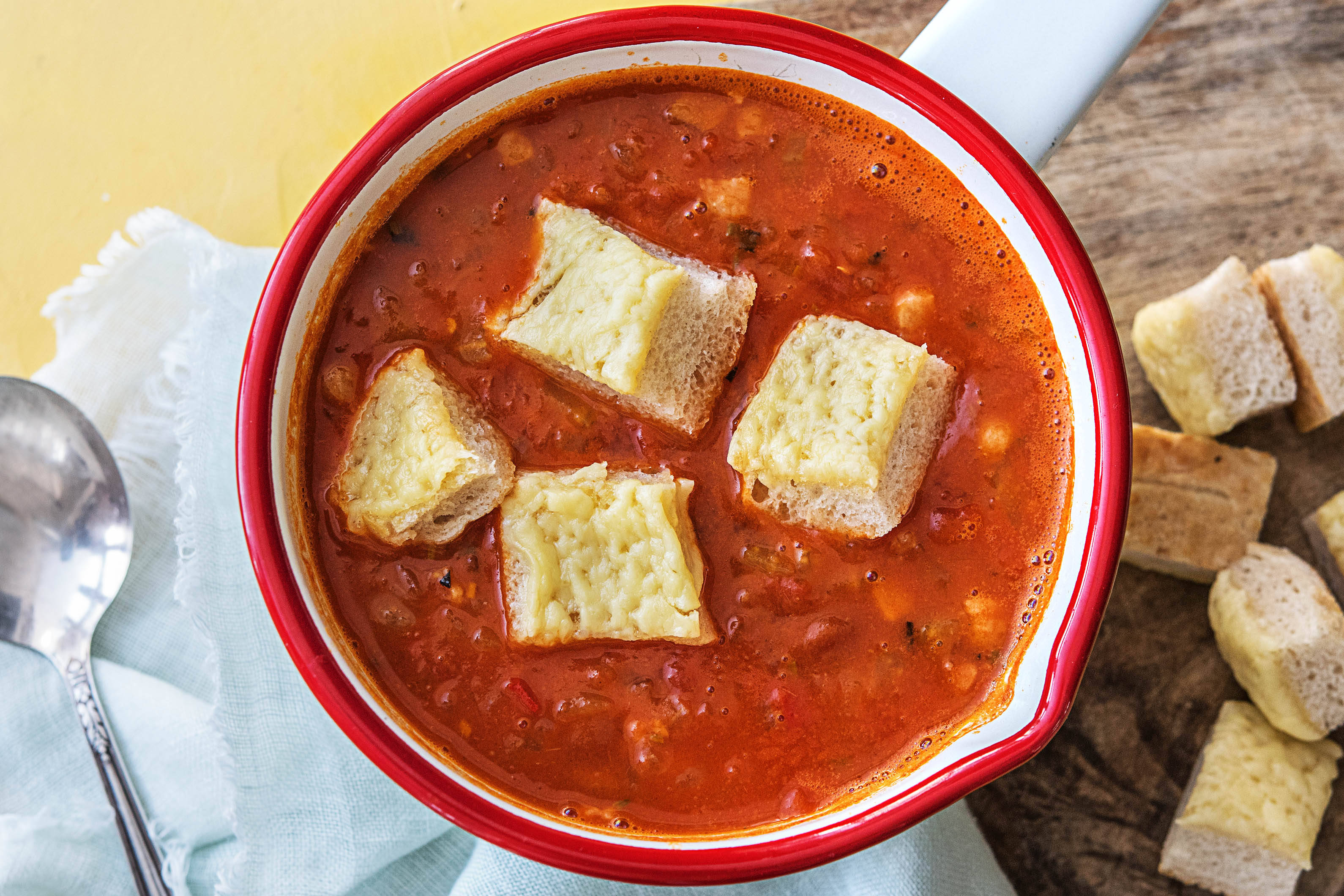 Die Hälfte des geraspelten Hartkäses in die Soße hineinrühren und mit Salz* und Pfeffer* abschmecken. Beiseitestellen.