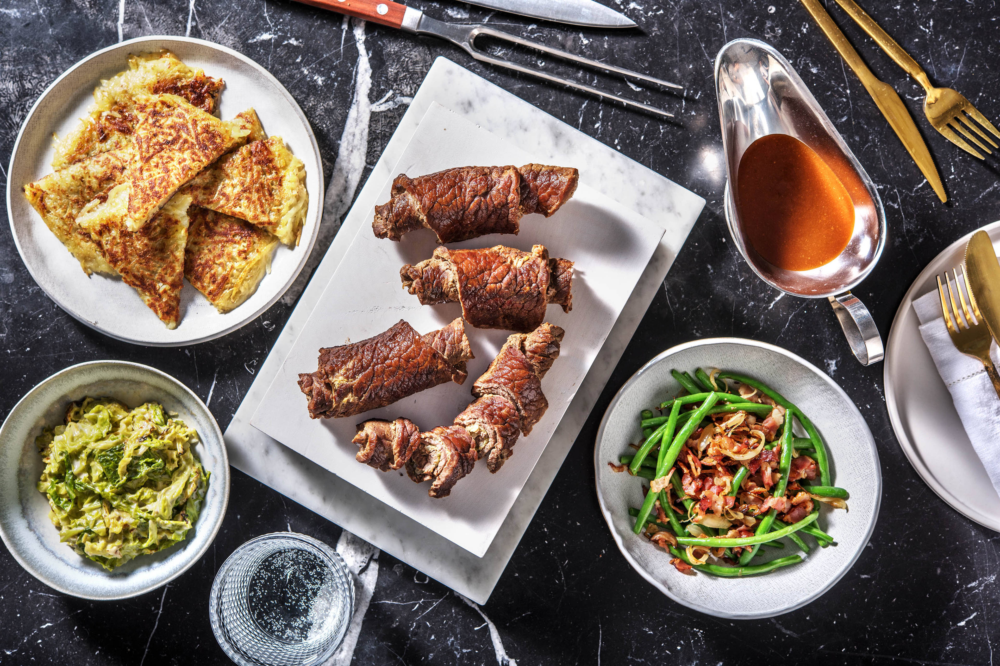 Kartoffeln auf Teller verteilen und die Polpette daneben anrichten.