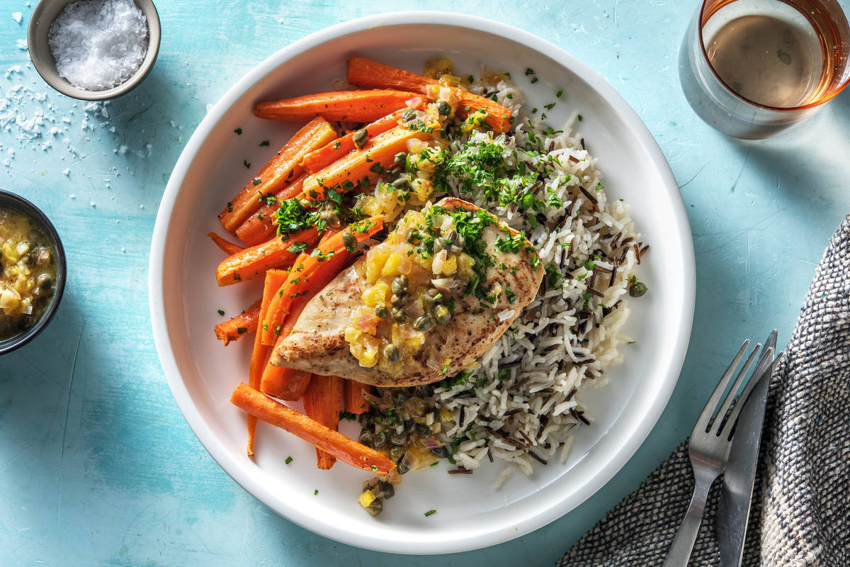 Wildreis mit einer Gabel auflockern und restliche Butter* unterheben. Reis auf Teller verteilen, Rüebli und Pouletbrust dazu anrichten. Poulet mit Petersilie toppen und alles zusammen mit Orangen-Kapern-Sauce geniessen.