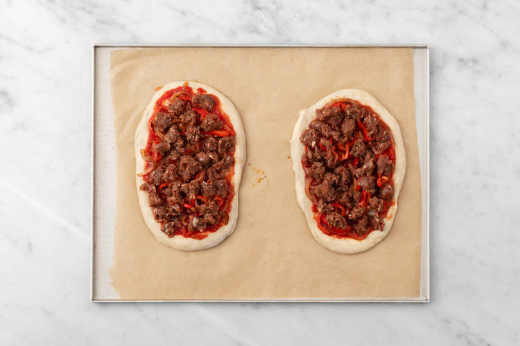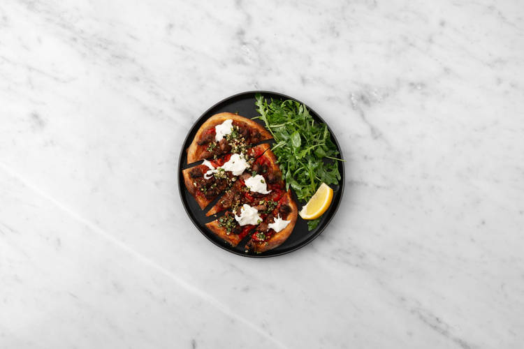 mit Hirtenkäse, Frühlingszwiebel-Joghurt und Paprika