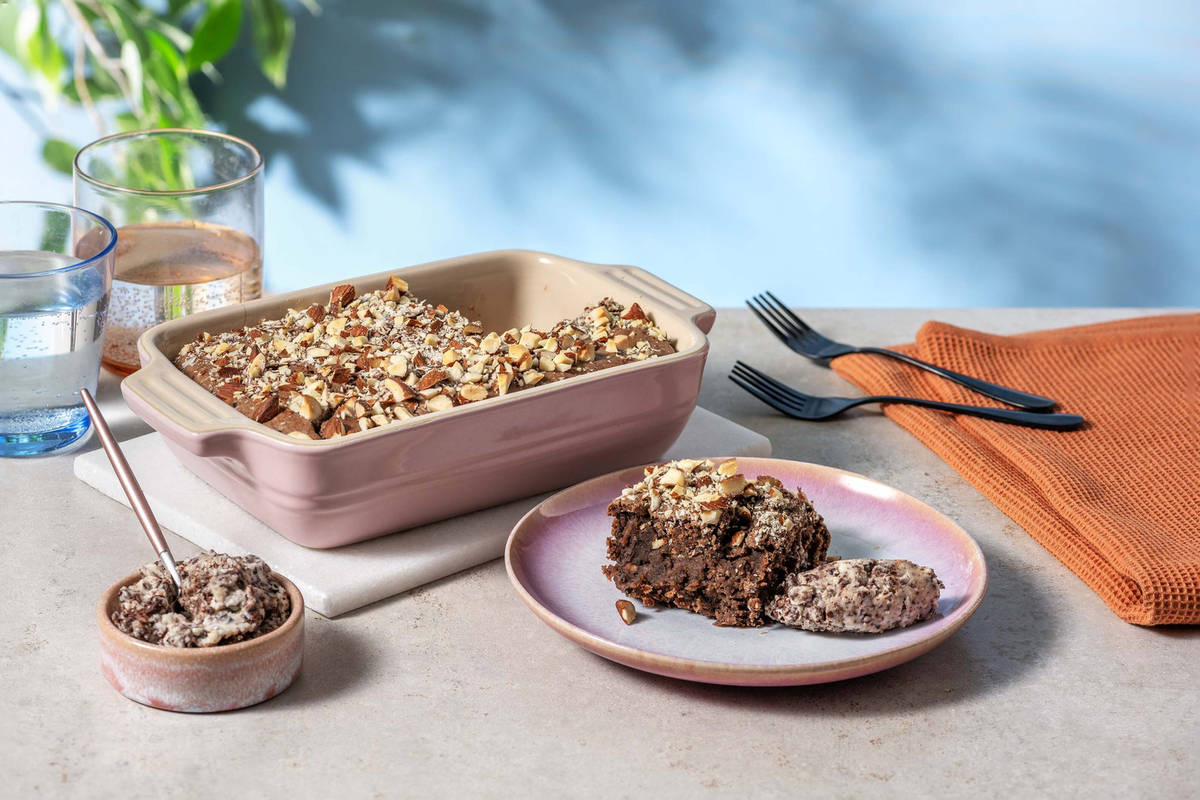 Schoko-Bohnen-Brownie mit Stracciatella-Crème