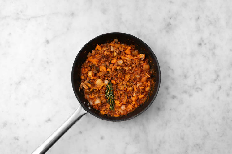 Sheppards Pie mit Petersilienblätter garnieren und nach Belieben aus der Auflaufform servieren.