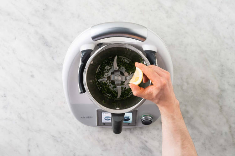 Kräuter fein hacken.