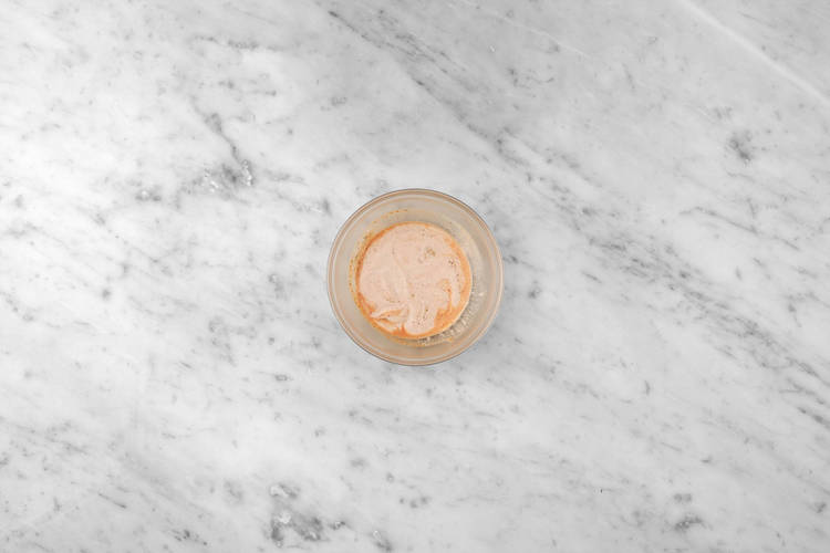 Mini-Tortillas auf Tellern verteilen und gleichmäßig mit dem Dip bestreichen.