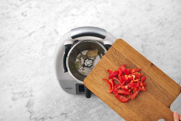 Kokosmilch, Champignons, Peperoni und Ingwer