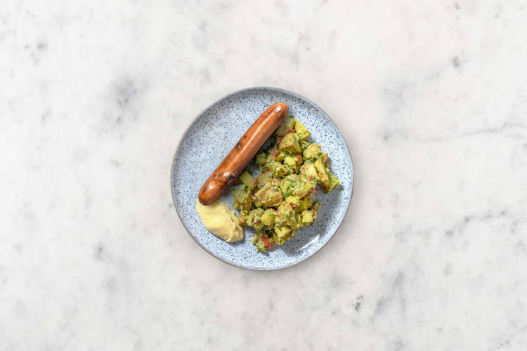 Vegane Bratwurst mit lauwarmem Kartoffelsalat