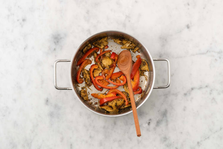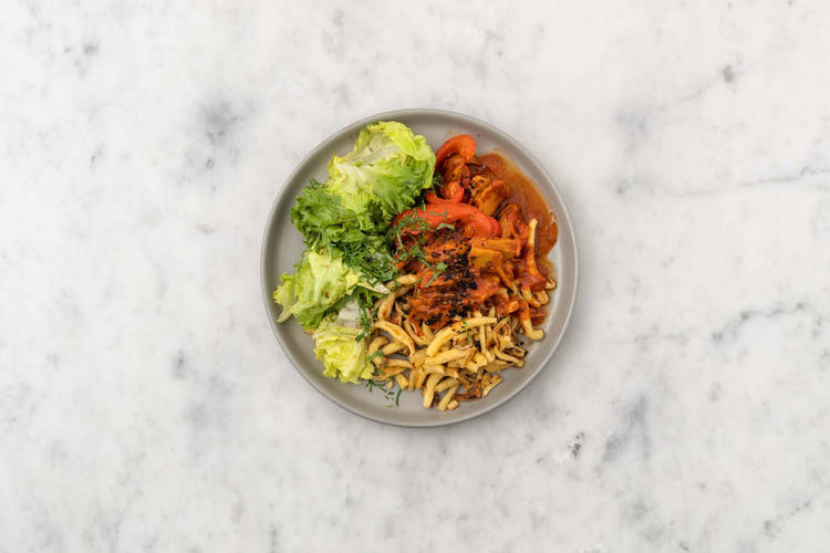 Veganer Paprikatopf mit Kräuter-Zitrone-Filetstücken