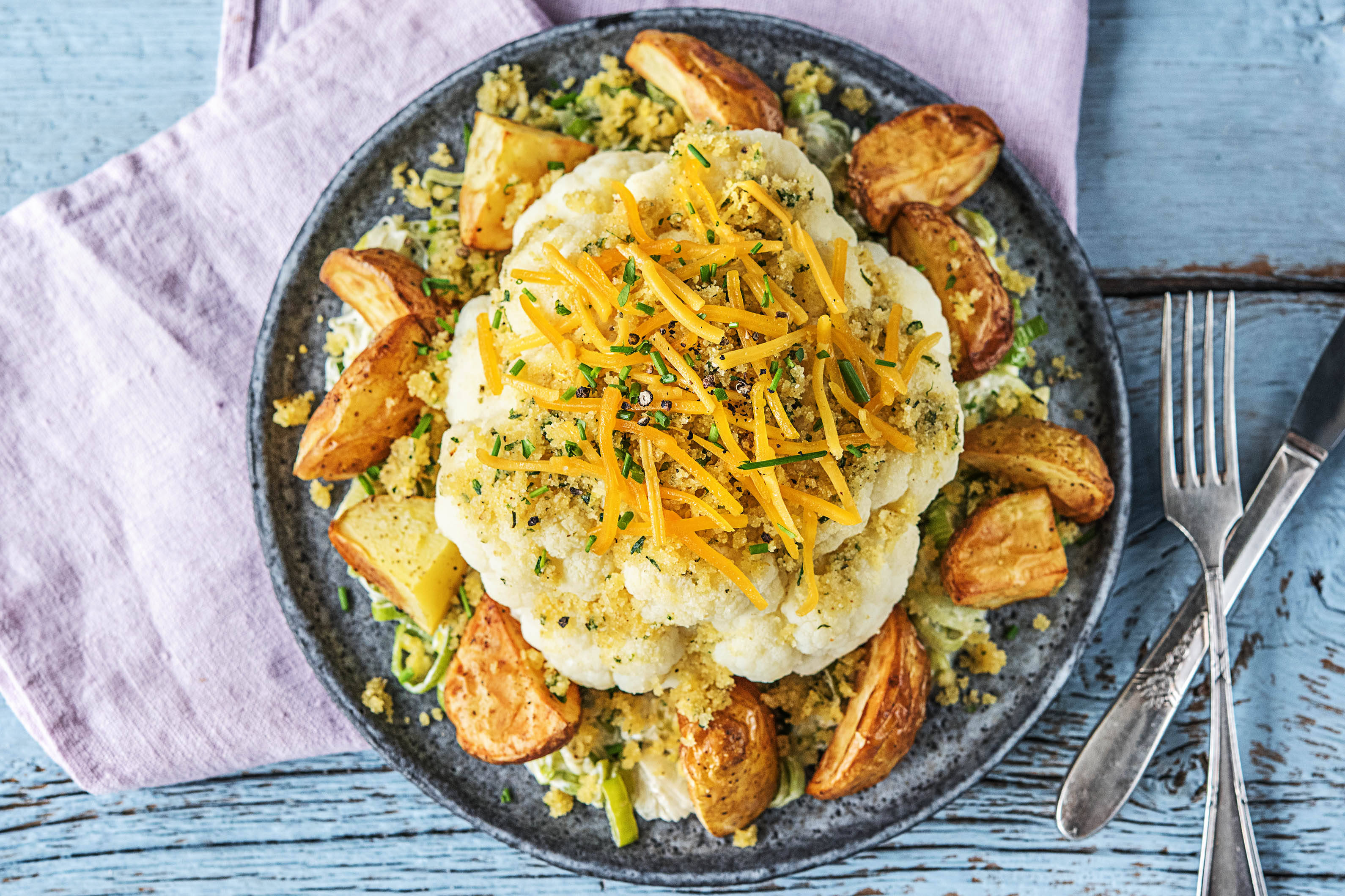 Blumenkohl ist ein großes, kreuzblütiges Gemüse, das eng mit dem Brokkoli verwandt ist. Er ist bei Vegetariern und Menschen, die Kalorien reduzieren wollen, sehr beliebt. Entdecke die leckersten Blumenkohl-Rezepte, die HelloFresh zu bieten hat.