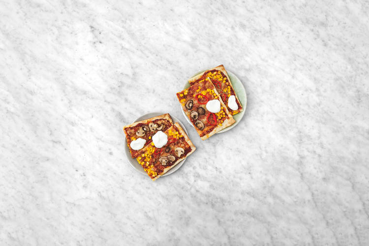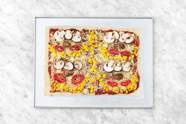 Mit Mais, Champignons und Paprika