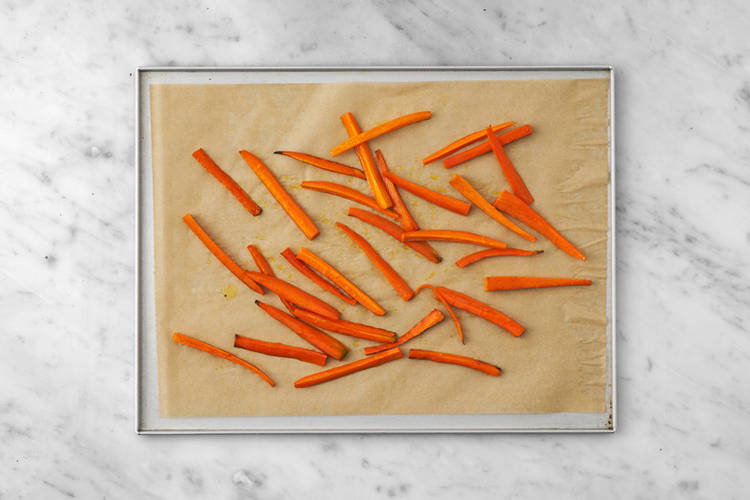 mit Wasabi-Mayonnaise und Süsskartoffel-Pommes